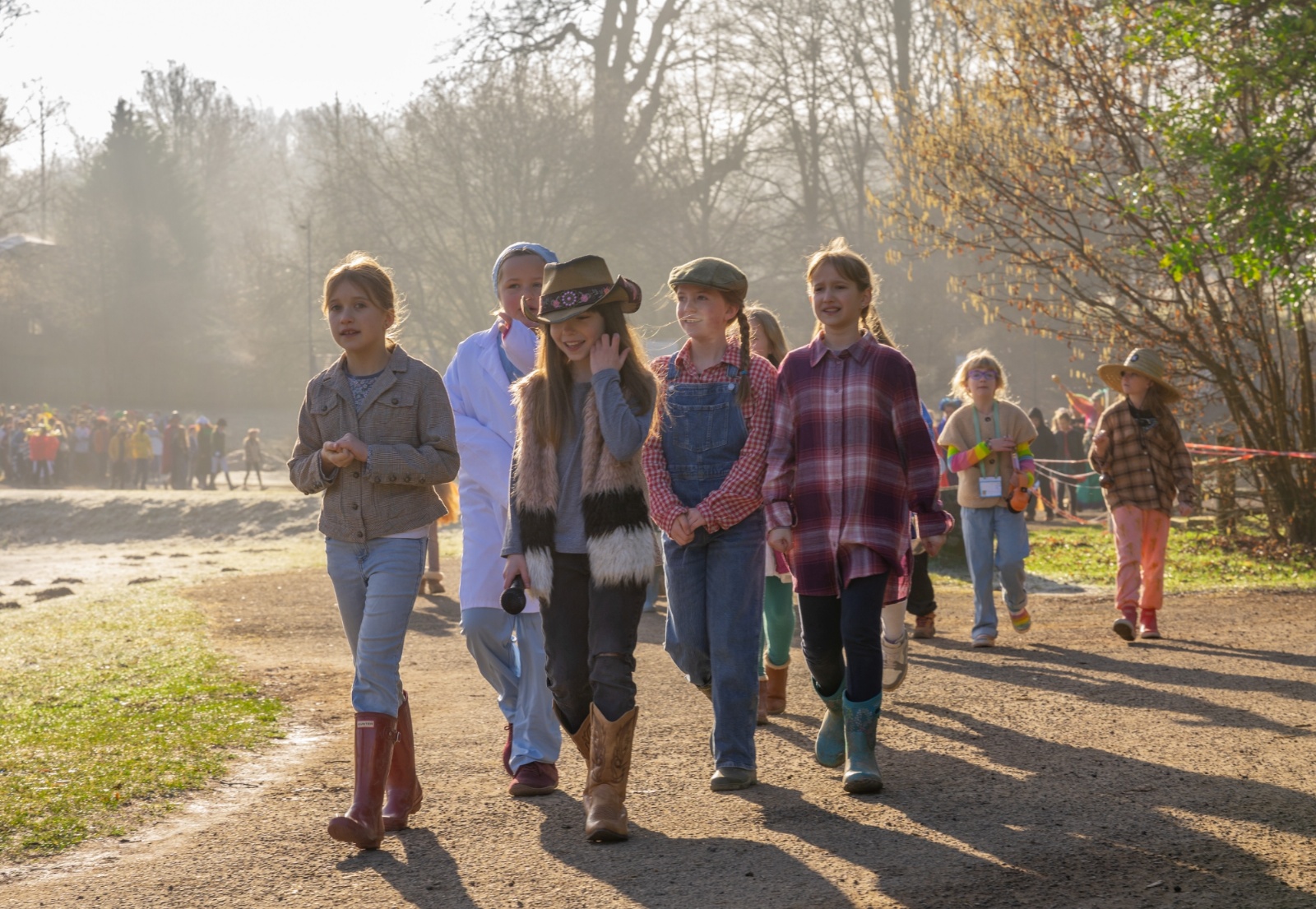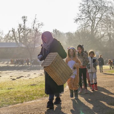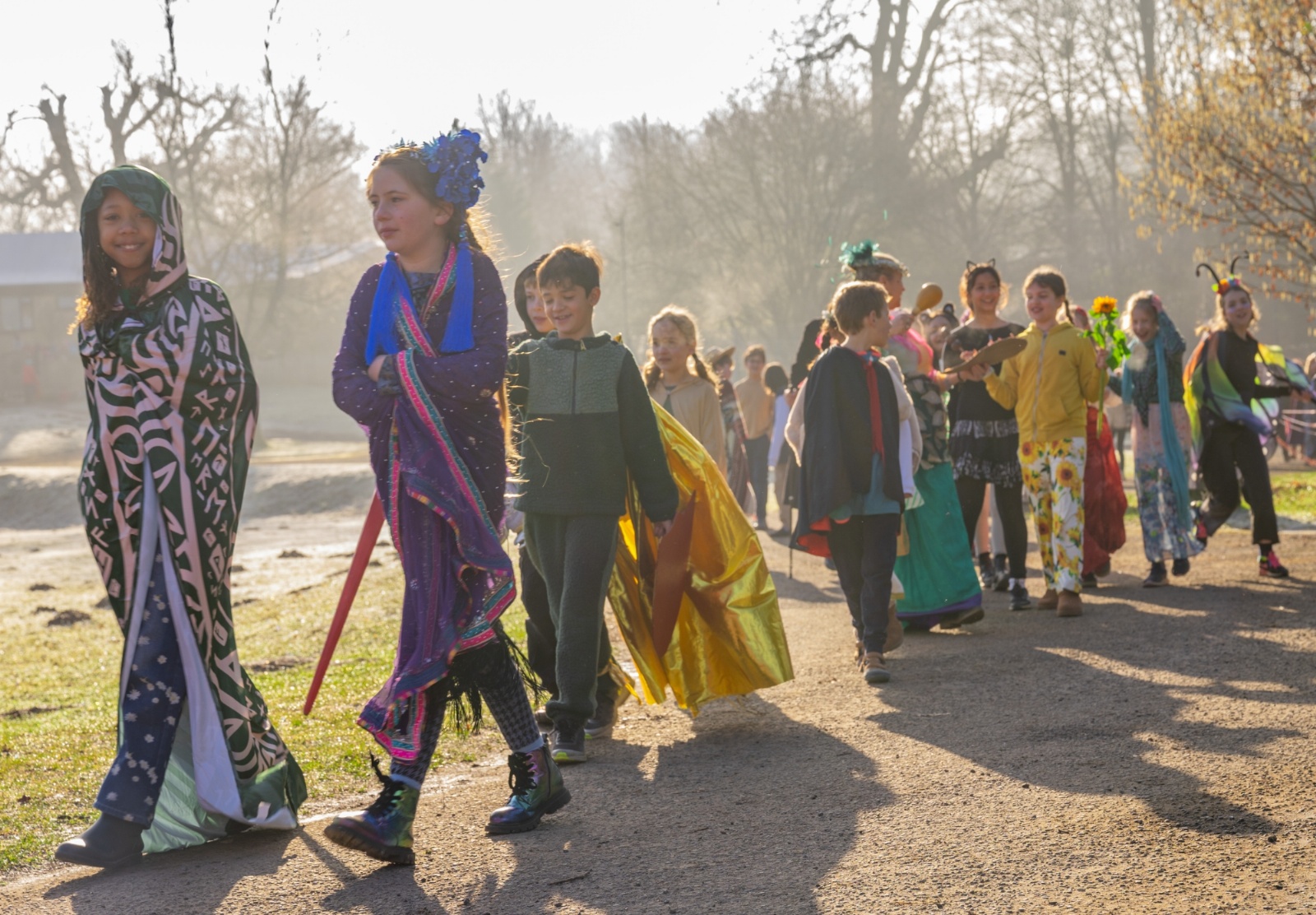This week Classes 1-8 celebrated Shrove Tuesday with a parade in front of the mansion in the spring sunshine! This was followed by pancake races in the gym.