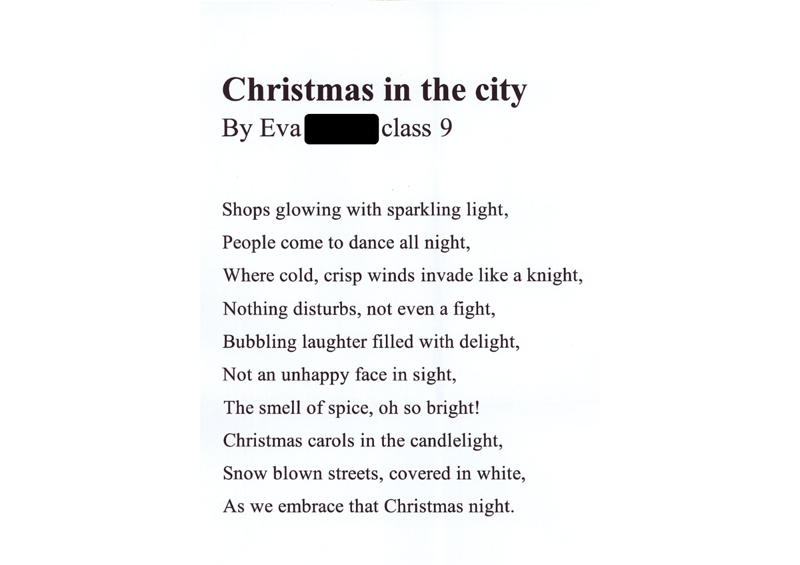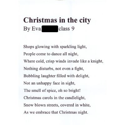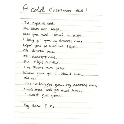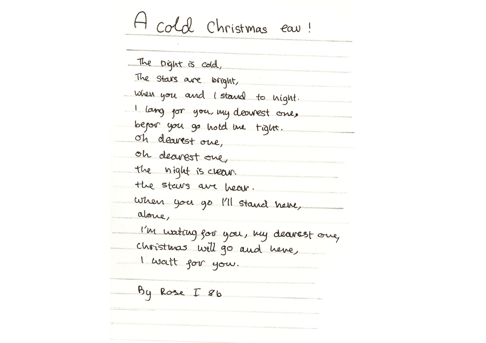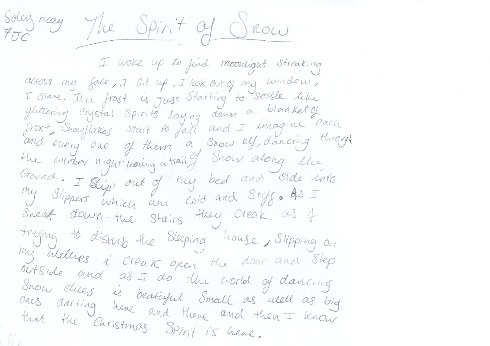 Over the following week, class 11, Mrs Courtney and I enjoyed reading all of the wonderful entries and would like to extend congratulations to everyone who entered; we know students spent time and care over their work and appreciate their every effort. The quality of writing was of an exceptionally high standard, and we were certainly transported to frosty winter wonderlands, cosy firesides and Santa's magical sleigh.