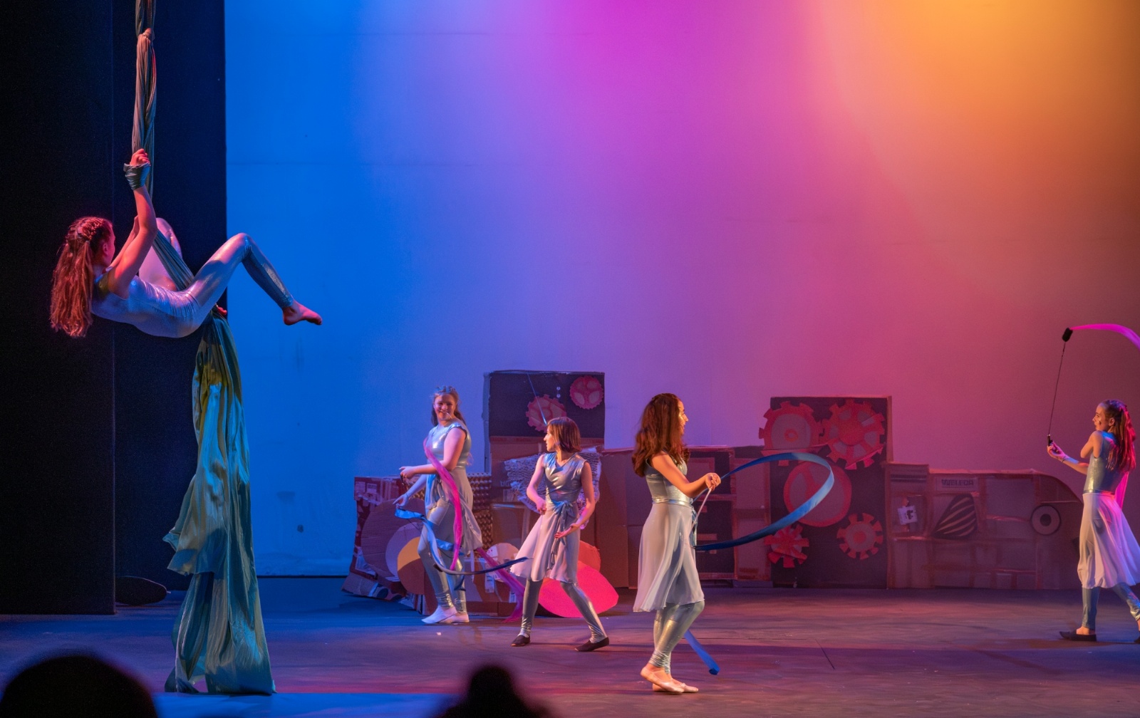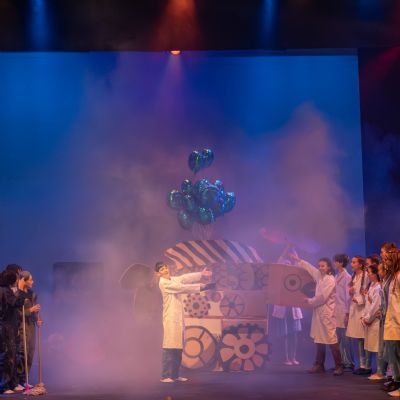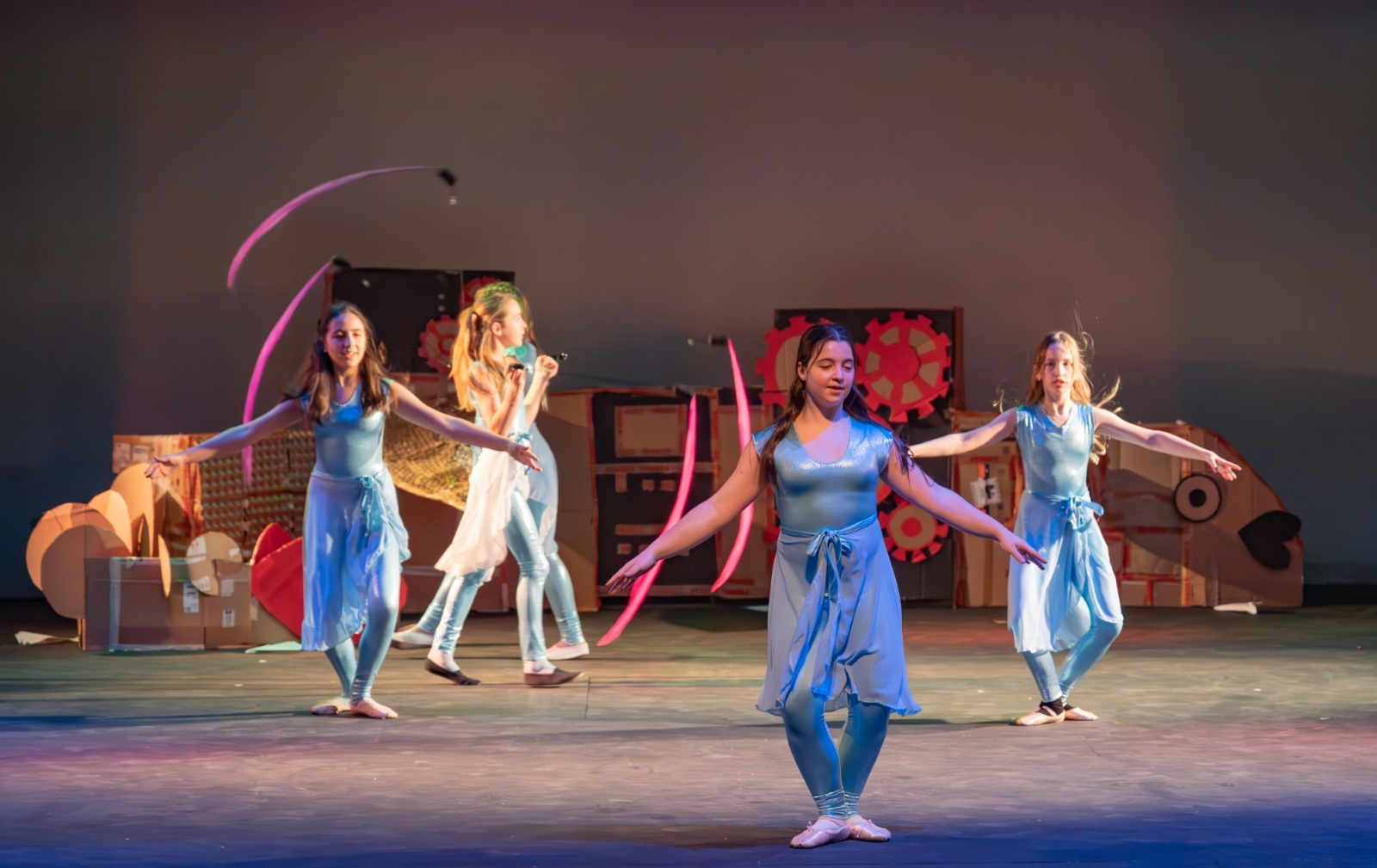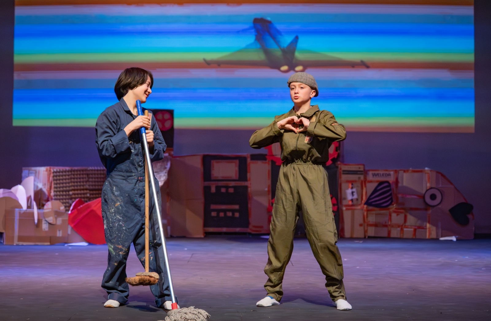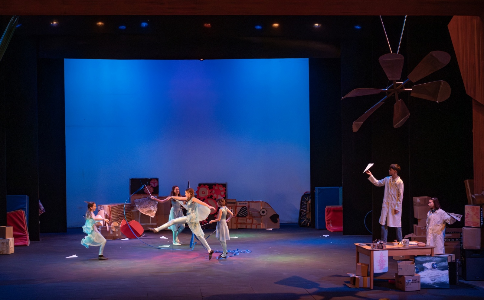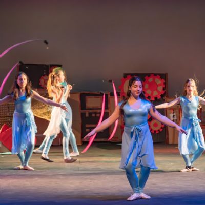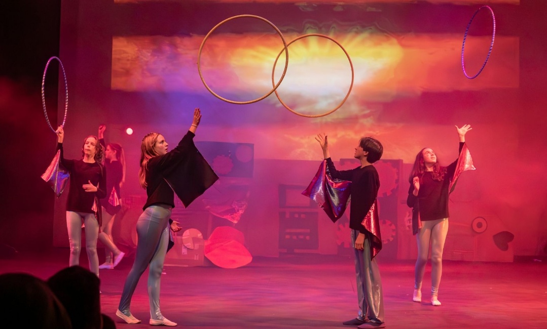 Members of the class then designed and created the set and all the different dances; they decided on the music; designed costumes which were then made by Carley Hague and some parents; and they had clowning workshops with Aiden Jinkins. Denis made over 150 recycled paper planes too.