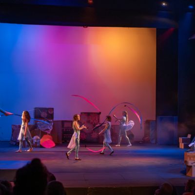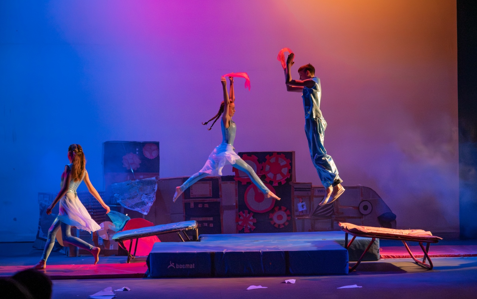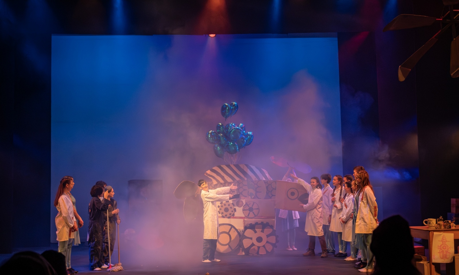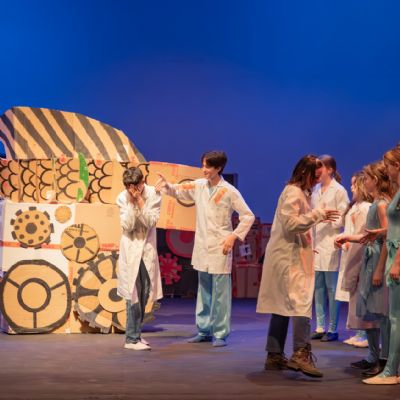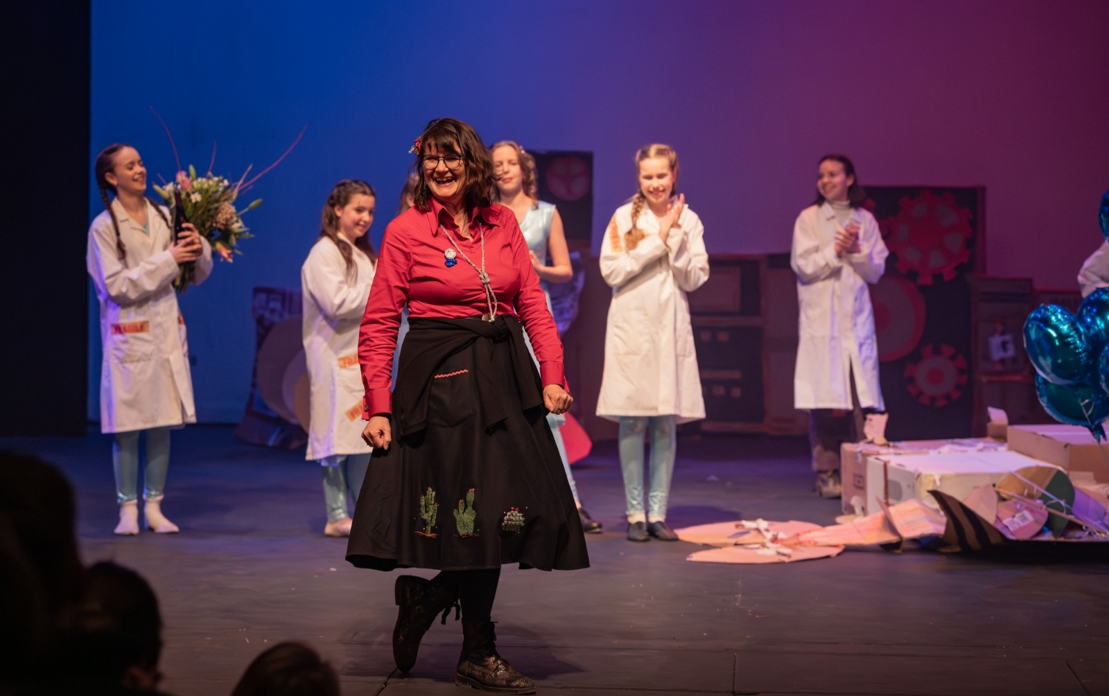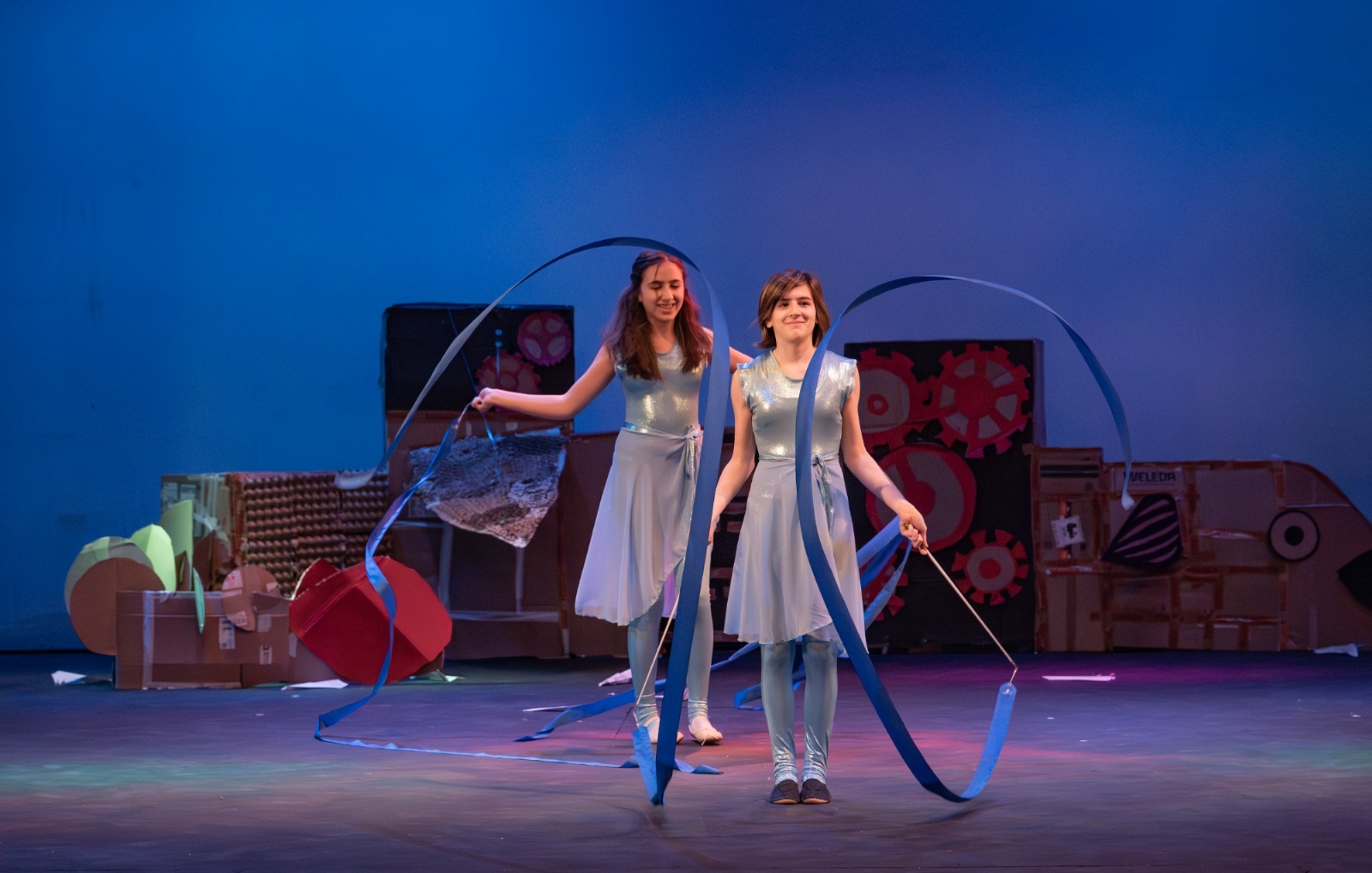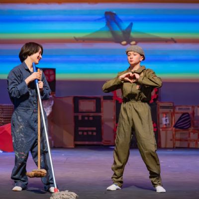 Members of the class then designed and created the set and all the different dances; they decided on the music; designed costumes which were then made by Carley Hague and some parents; and they had clowning workshops with Aiden Jinkins. Denis made over 150 recycled paper planes too.