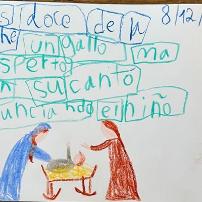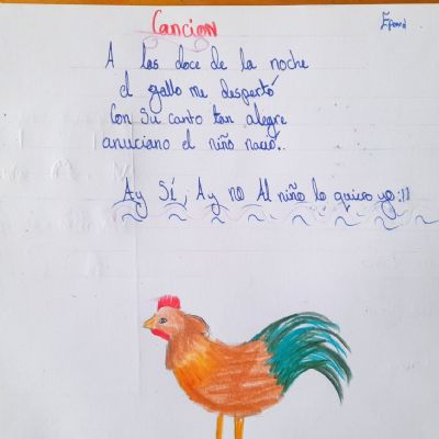 Class 3AD loves drawing after hearing stories in Spanish. They are also preparing a short play, singing, playing games, and reciting poems