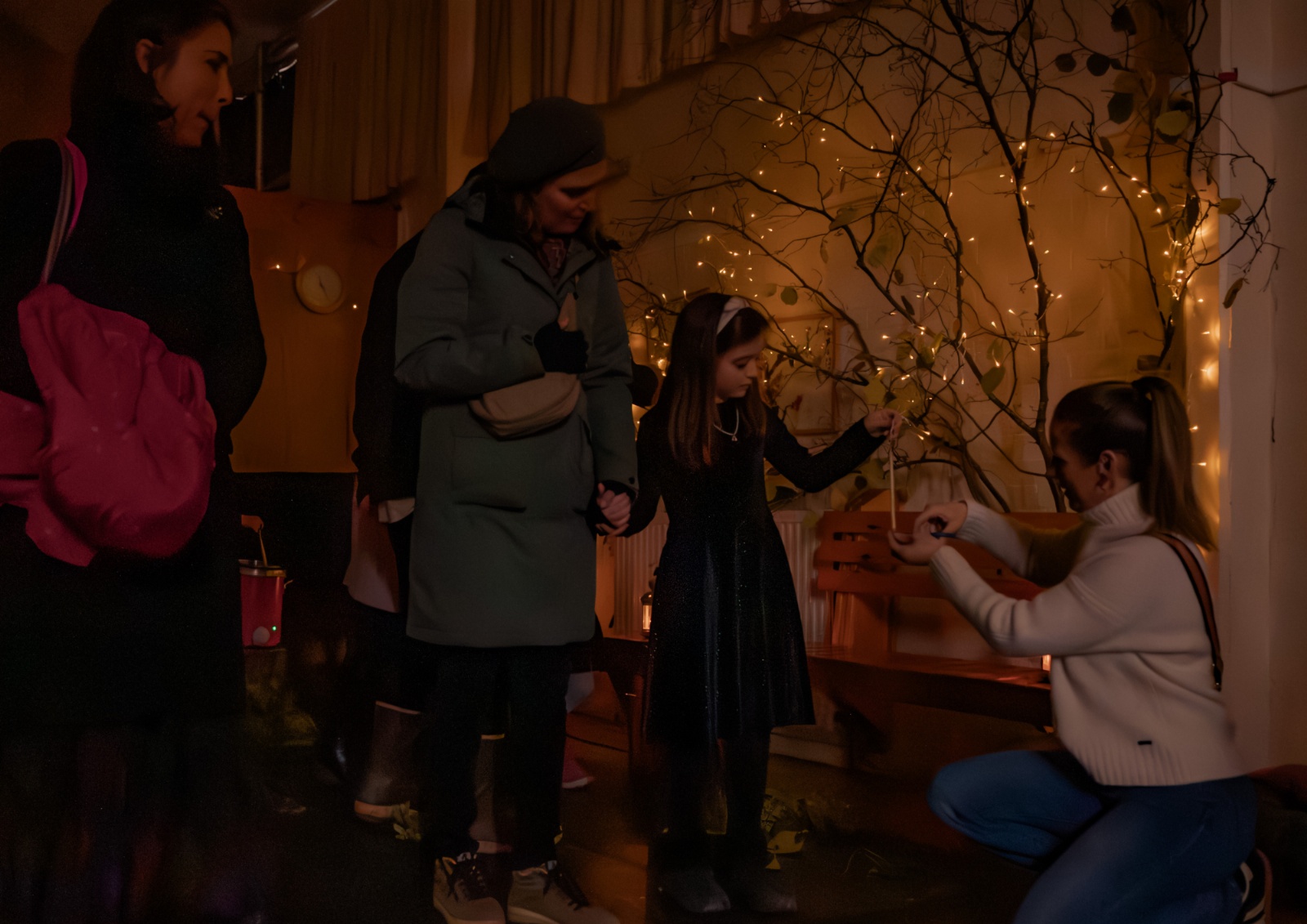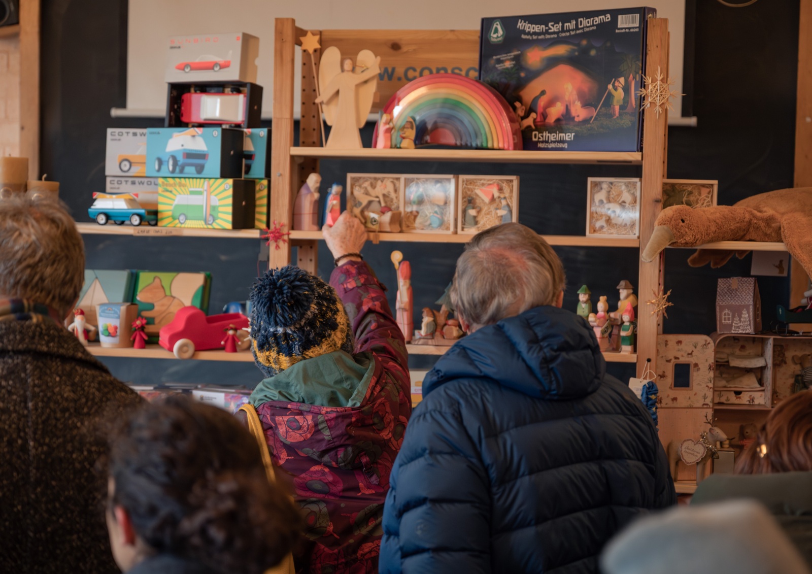 This year we had two rooms with stalls in the middle school and for the first time at the Advent Fair, we had a Michael Hall merchandise stall and an alumni stand. In the Eurythmy studio we had handmade items, made by parents and pupils. There was a unique array of Christmas items and gifts at the fair, including handmade candles, limited-edition lanterns, Christmas wreaths, weaving crafts, woodwork, and Waldorf decorations lovingly made by kindergarten parents. The second-hand book stall was a cozy space to mull over something new to read.