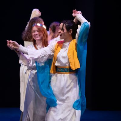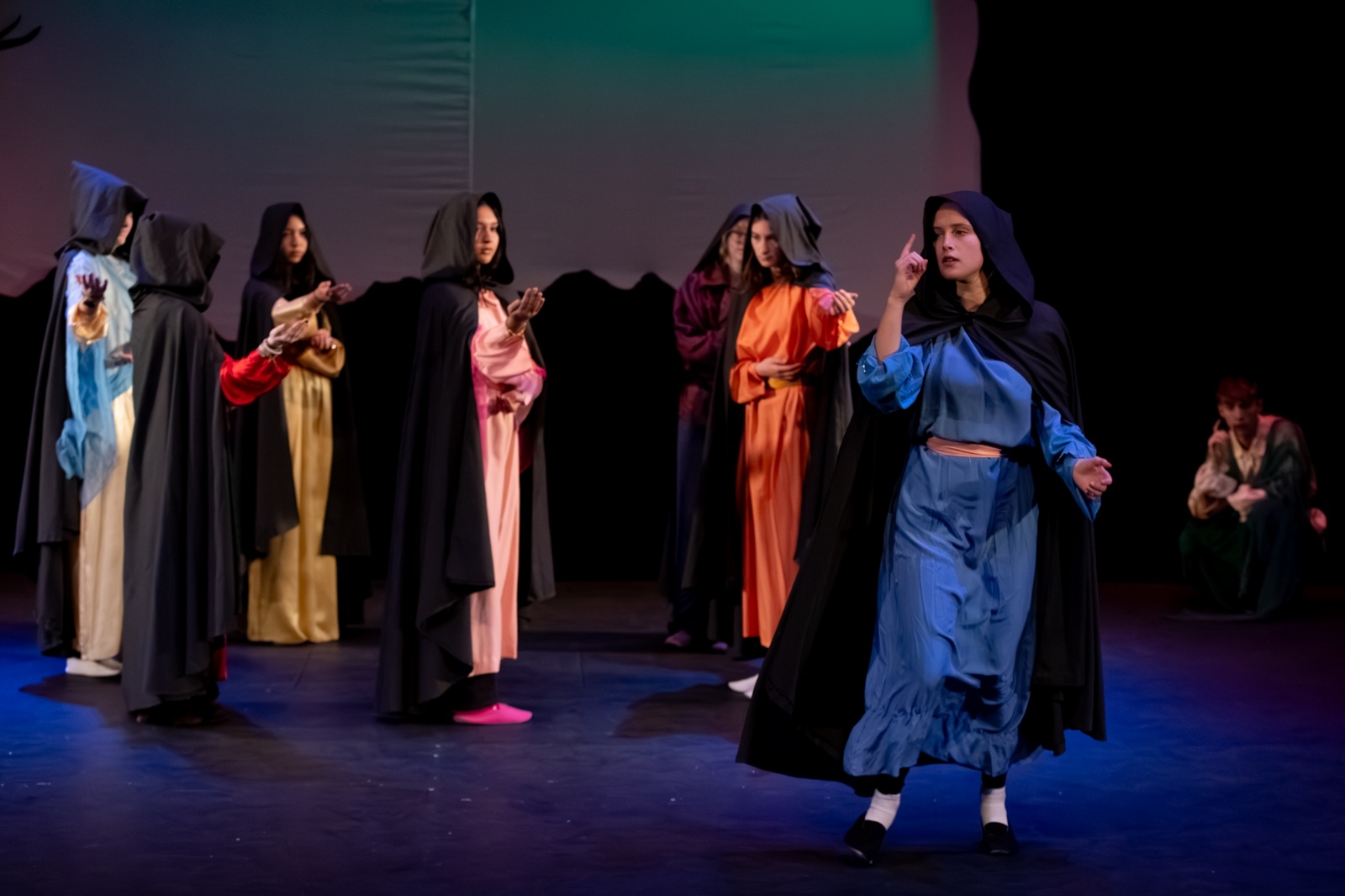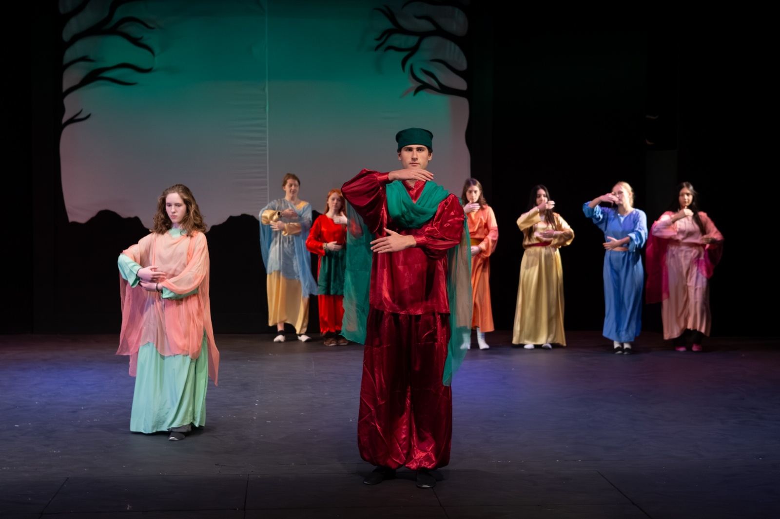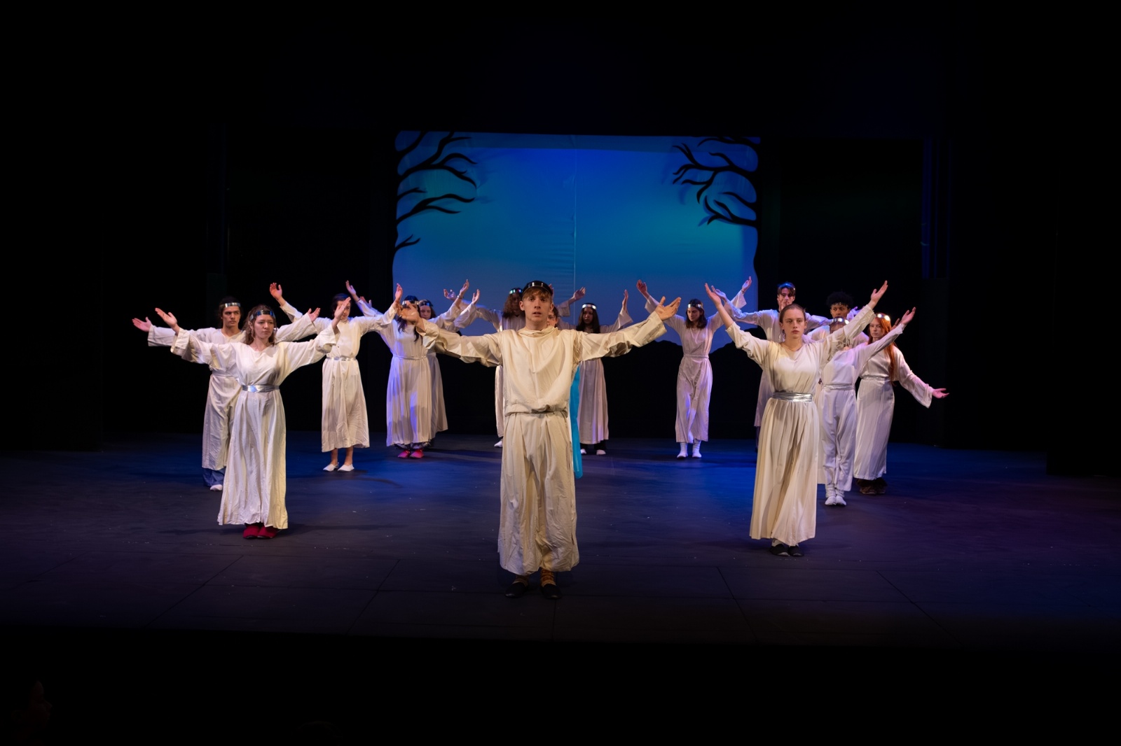 Watching Class 12 take part in this year’s Eurythmy production of The Snow Queen has been a stand out moment of their final year. Seeing them on stage alongside Class 3 brought a wonderful sense of scale and warmth to the story, and it was only in the full flow of rehearsals that the richness of this collaboration truly revealed itself. As the students worked through the journey of Kay and Gerda, I could see how each scene, the goblins, the reindeer, the ravens asked for its own gesture quality and atmosphere, and how thoughtfully the class rose to that task. The inclusion of the shadow puppet screen added a striking visual layer, allowing key moments to unfold with a dreamlike quality behind the illuminated cloth.