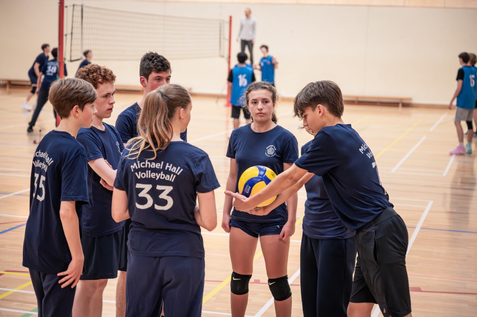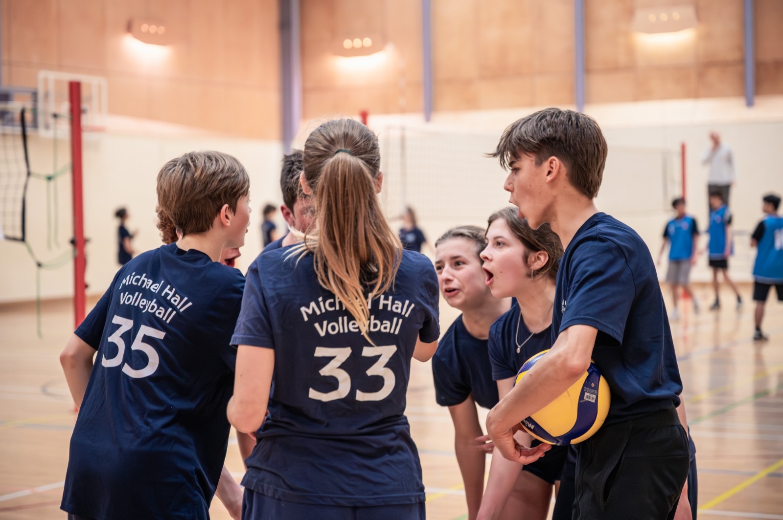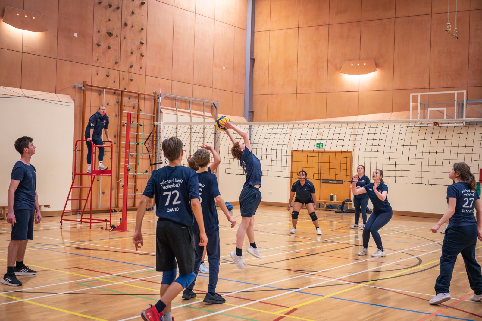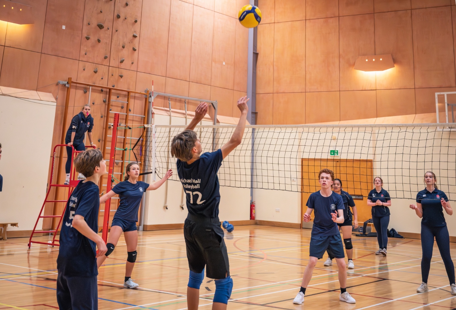 We have had our first seasonal volleyball fixtures at U16 and U18 level against local rivals : Sackville.  The games were played in good spirits and the sporting atmosphere was strong.  It was a double victory for Michael hall in both games (U16- 25-16, 18-25, 25-14) (U18- 25-15,25-15,25-13).  Special congratulations to our class 9ers- Alma, Otto, Liam and Sazzy on their winning debut.