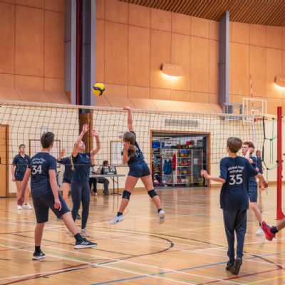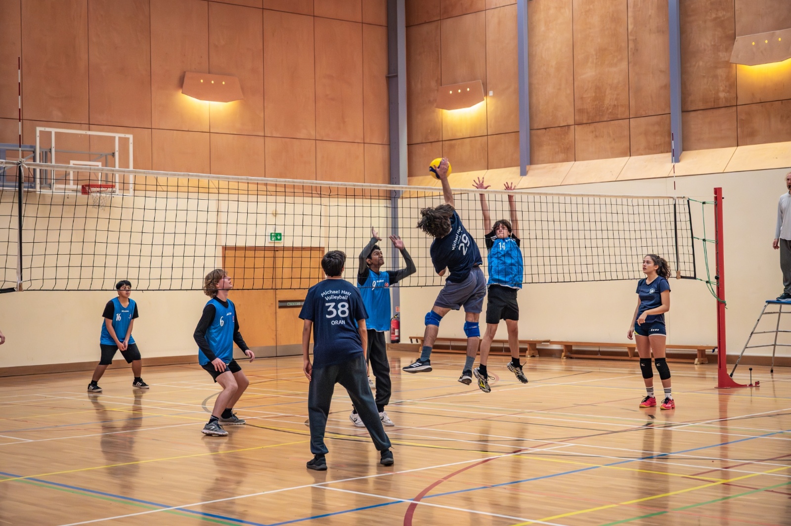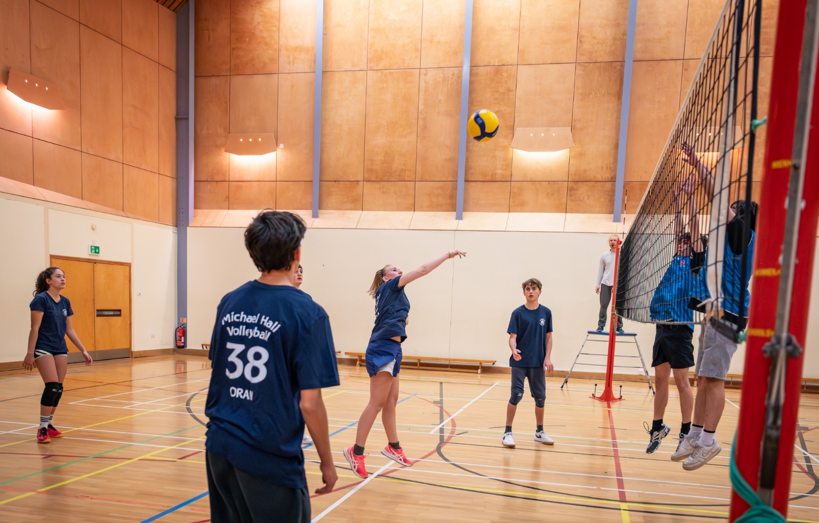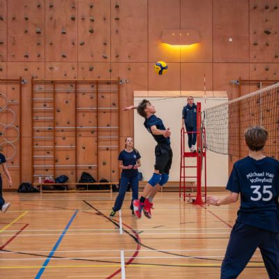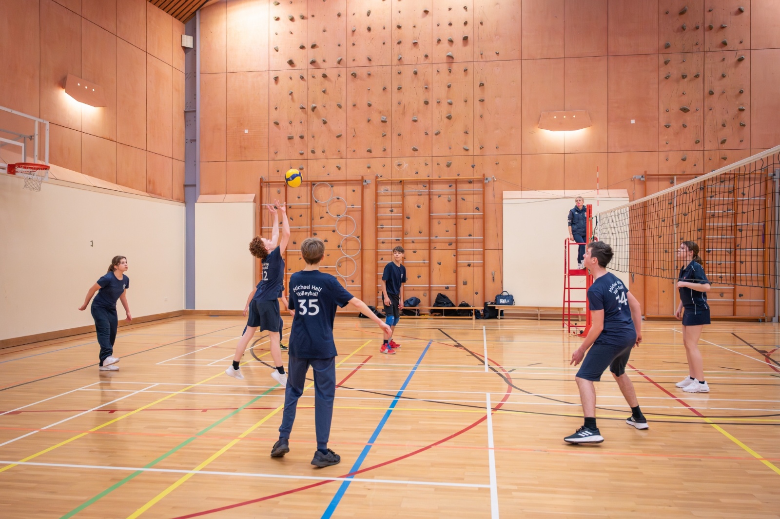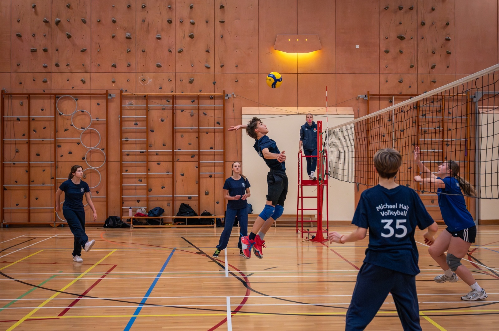 We have had our first seasonal volleyball fixtures at U16 and U18 level against local rivals : Sackville.  The games were played in good spirits and the sporting atmosphere was strong.  It was a double victory for Michael hall in both games (U16- 25-16, 18-25, 25-14) (U18- 25-15,25-15,25-13).  Special congratulations to our class 9ers- Alma, Otto, Liam and Sazzy on their winning debut.