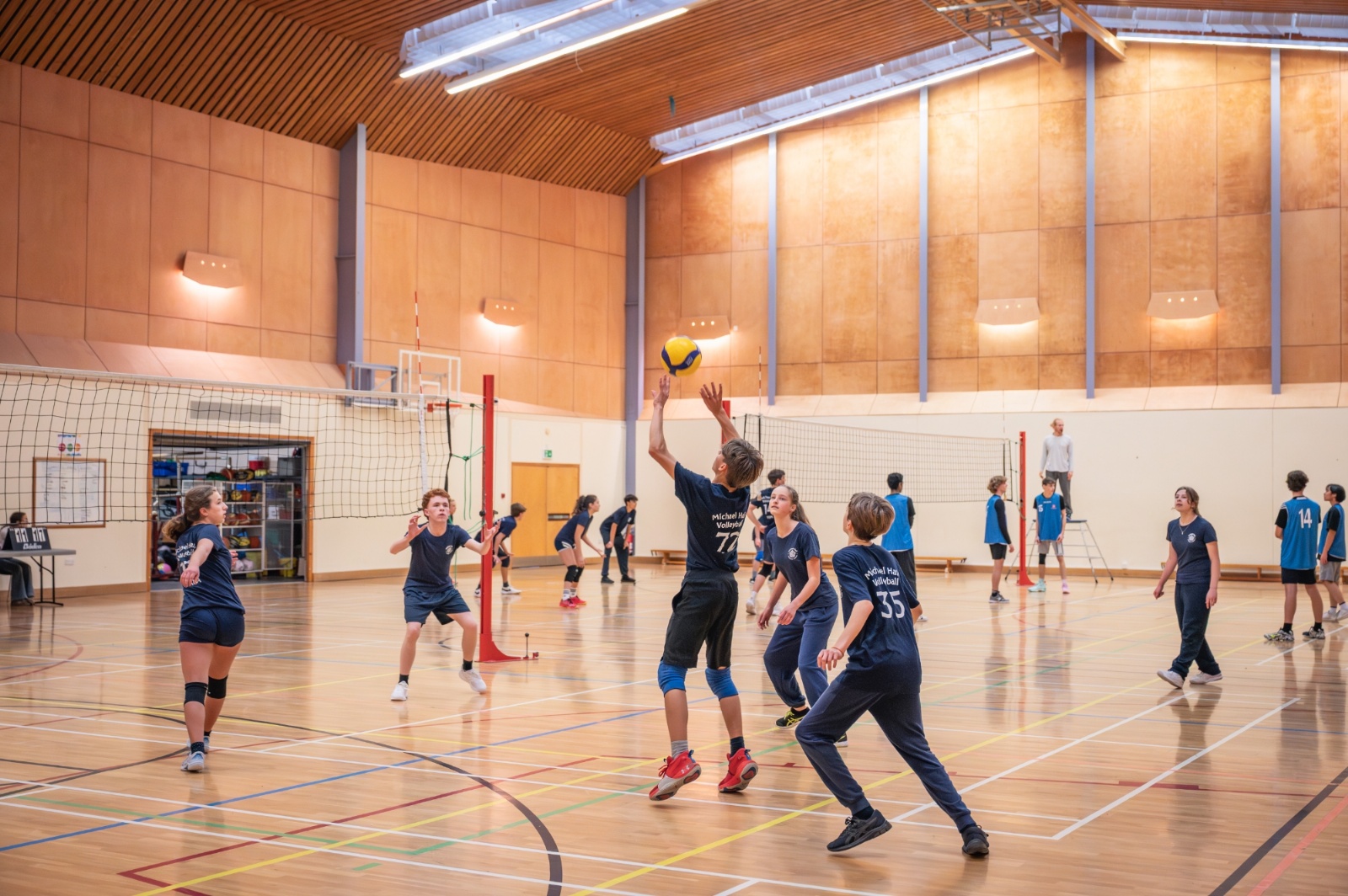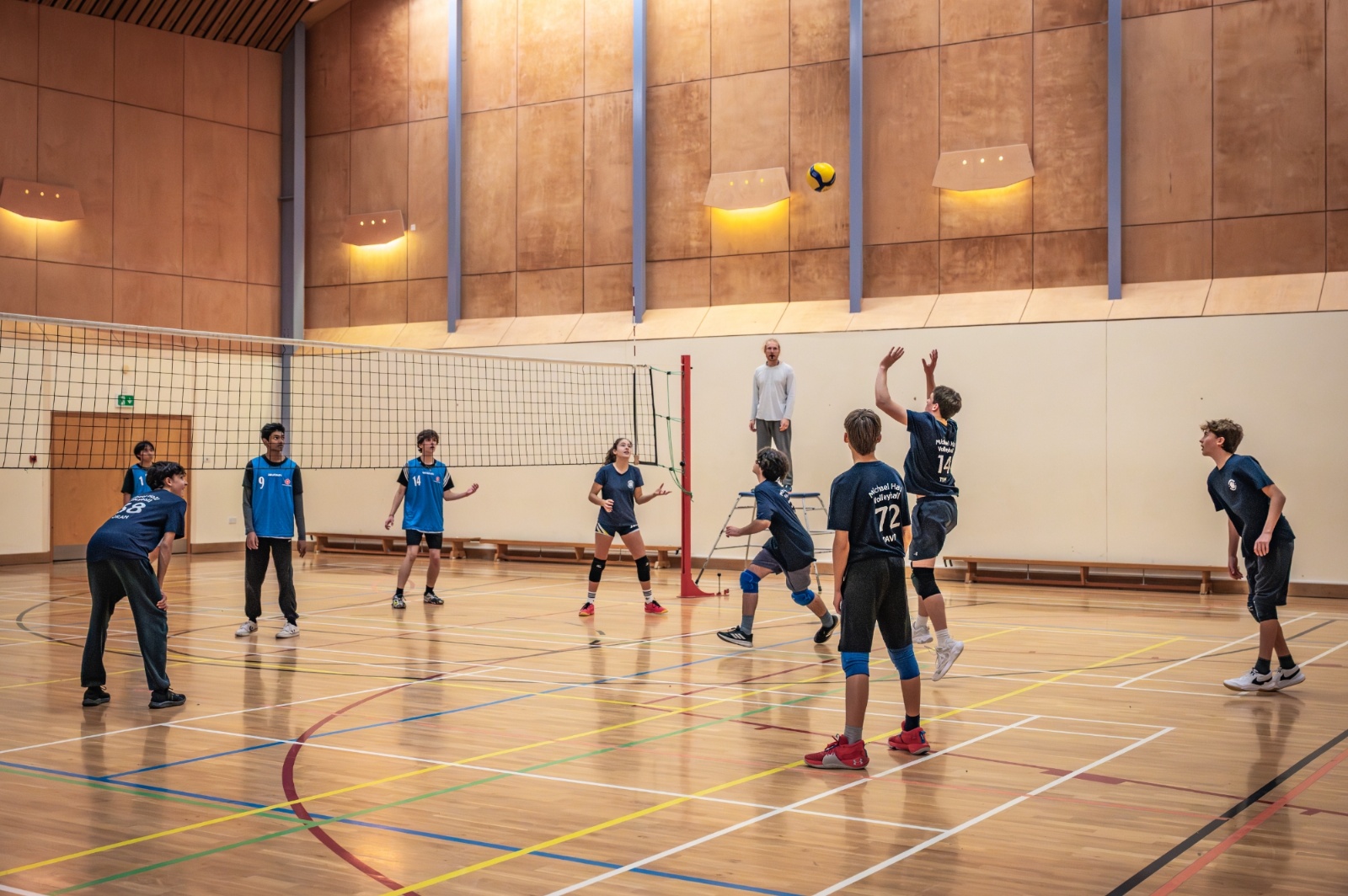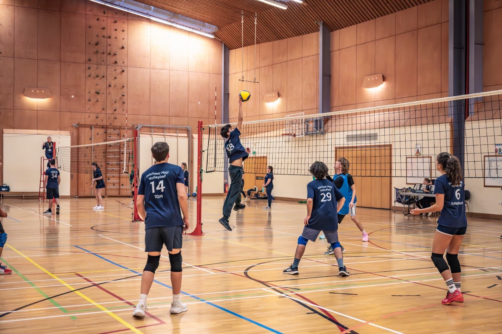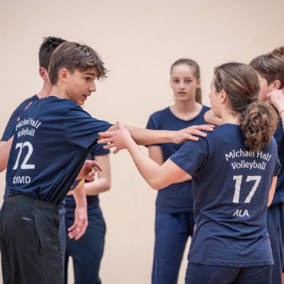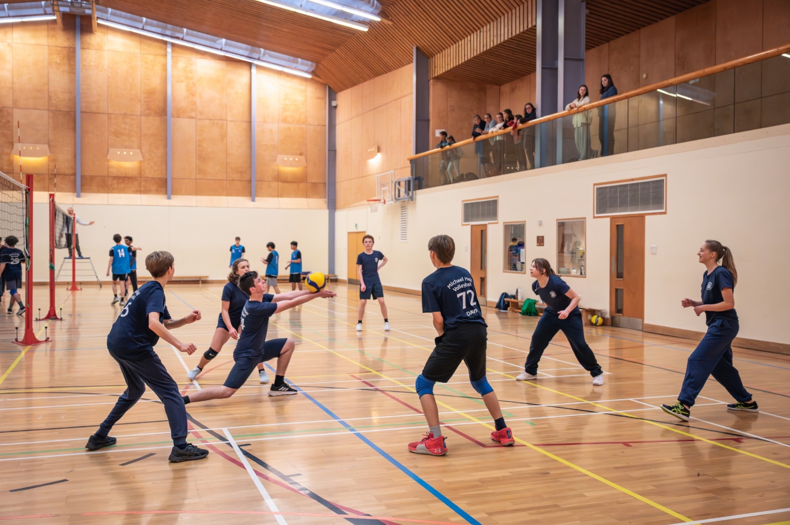 We have had our first seasonal volleyball fixtures at U16 and U18 level against local rivals : Sackville.  The games were played in good spirits and the sporting atmosphere was strong.  It was a double victory for Michael hall in both games (U16- 25-16, 18-25, 25-14) (U18- 25-15,25-15,25-13).  Special congratulations to our class 9ers- Alma, Otto, Liam and Sazzy on their winning debut.