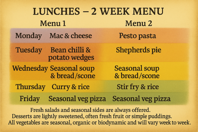 - Families may choose to purchase lunches half-termly (one block at a time), or weekly, if more flexibility is preferred